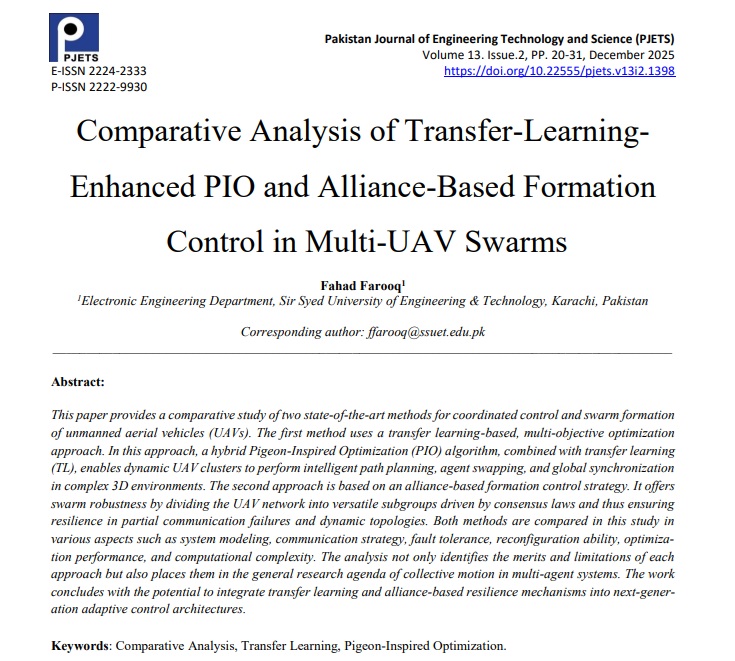 Comparative Analysis of Transfer Learning and Alliance-Based Approaches in Multi-UAV Swarm Coordination and Control. (2025). Pakistan Journal of Engineering, Technology and Science, 13(2), 20-31. https://doi.org/10.22555/pjets.v13i2.1398