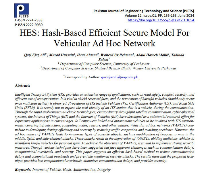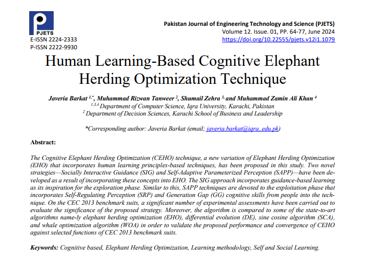 Vol. 12 No. 1 (2024): Pakistan Journal of Engineering, Technology & Science