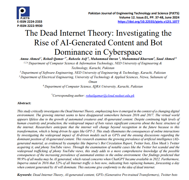 The Dead Internet Theory: Investigating the Rise of AI-Generated Content and Bot Dominance in Cyberspace