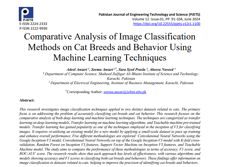 Comparative Analysis of Image Classification Methods on Cat Breeds and Behavior using Machine Learning Techniques